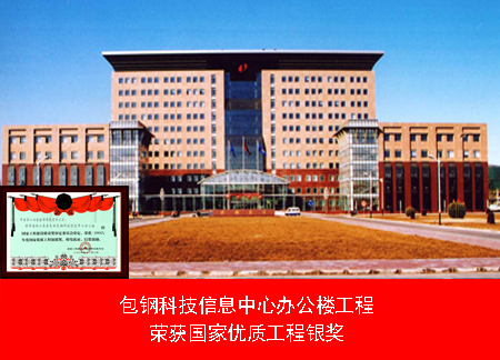 包鋼科技信息大樓,是包鋼建廠50周年的標志性建筑,榮獲國家優質工程銀質獎,榮獲內蒙古自治區新技術應用示范工程。