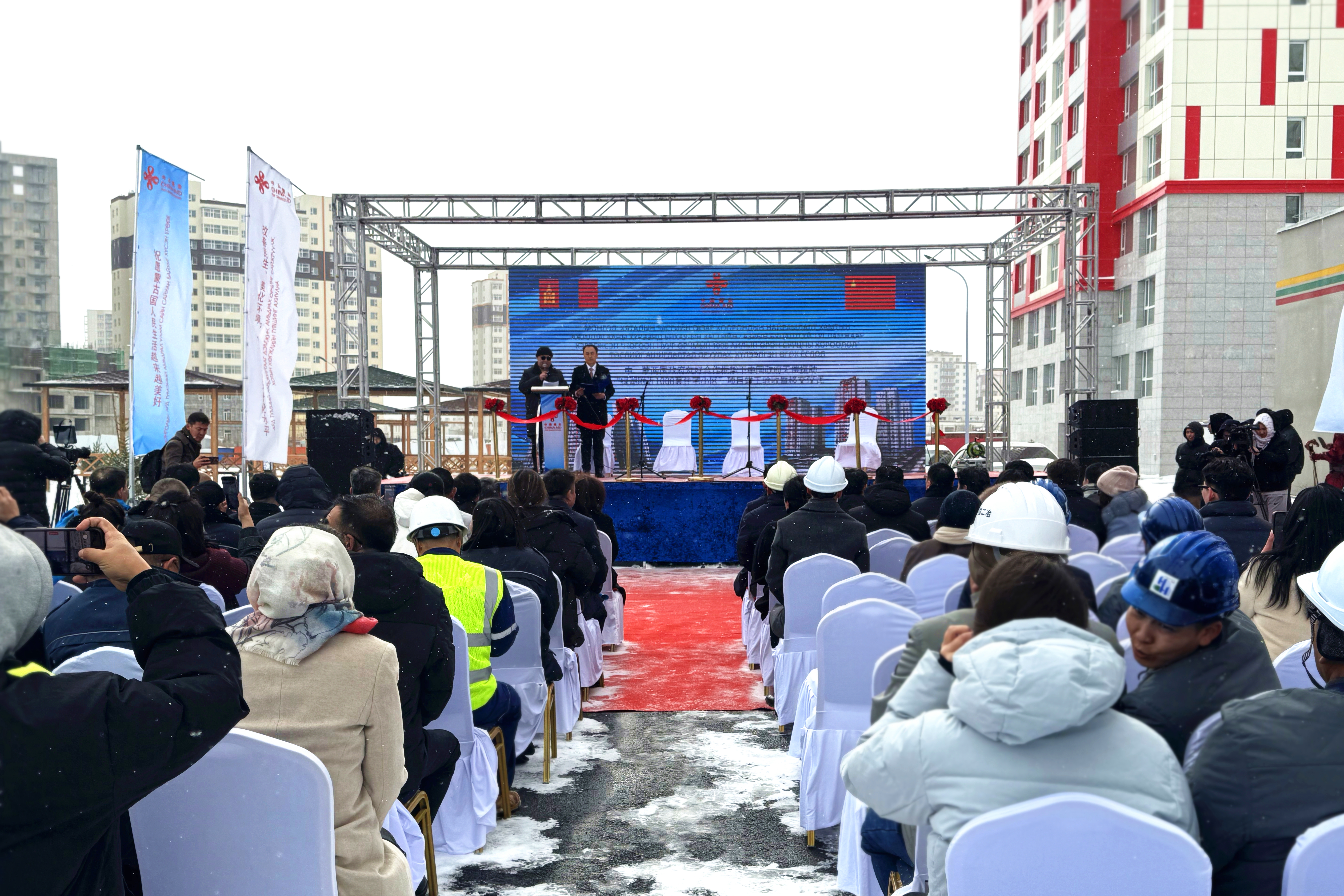 10月16日,正值中蒙建交76周年紀念日,中國二冶承建的中國政府無償援助蒙古棚戶區改造項目竣工移交儀式在烏蘭巴托隆重舉行。中國駐蒙古國大使、蒙古國政府高層領導及雙方代表百余人出席儀式。